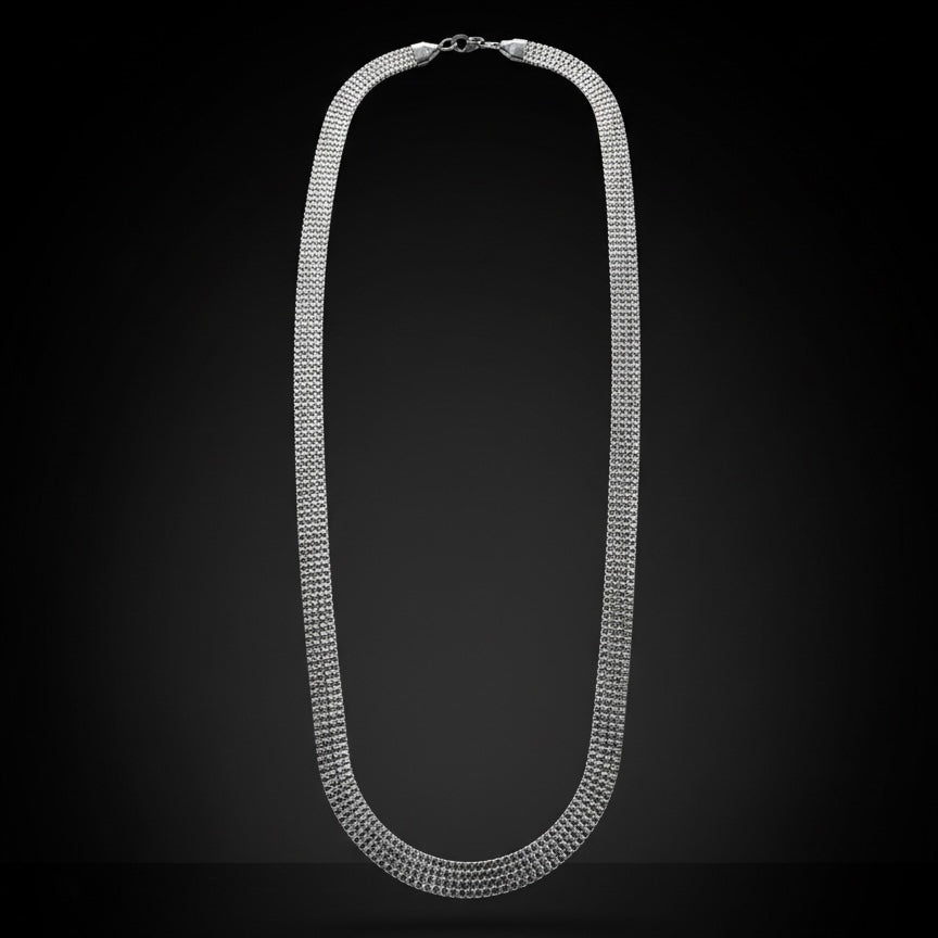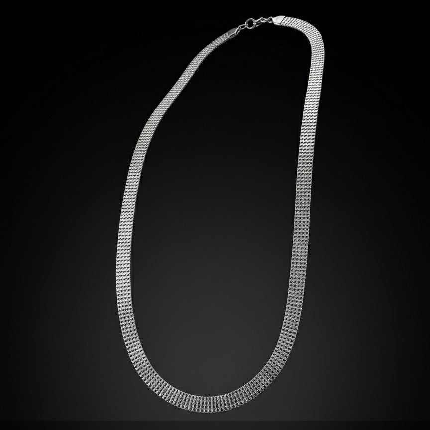 Cadena china plateada gruesa para el hombre que quiere imponerse sin decir una palabra. Su diseño robusto y el brillo del plateado crean un estilo fuerte, elegante y con actitud.